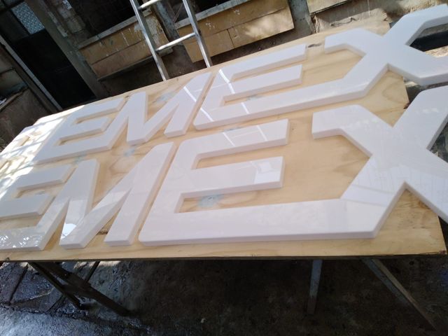 Letras realzadas y lonas publicitarias diseñadas a medida.